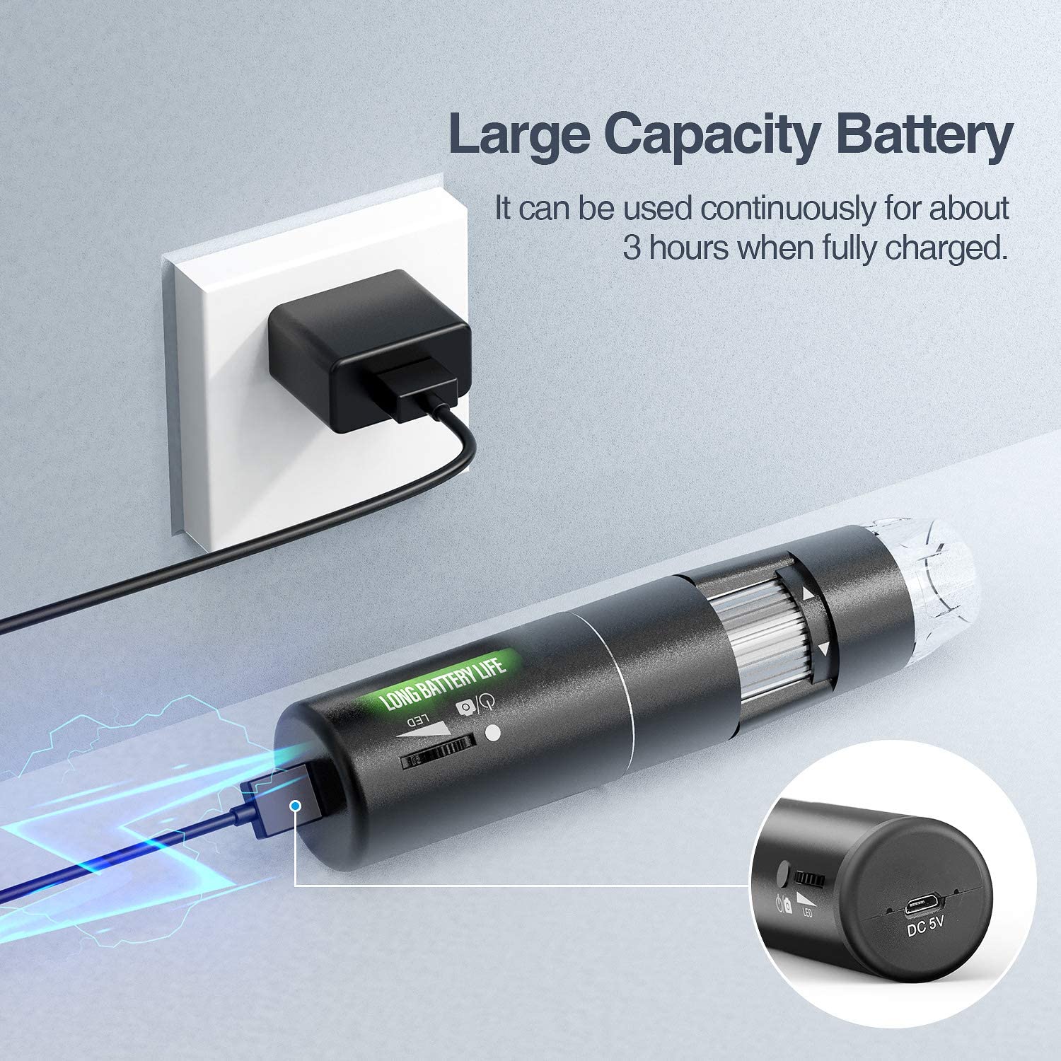[Strong Compatibility] Digital LED microscope can be used with Android devices and IOS systems. The product supports Android4.3, iOS 8.0, win 7/8/10, MacOS *10.8 and above systems, and also supports USB interface for connection To the computer, the microscope is small and easy to carry, you can explore the hidden micro world anytime, anywhere.